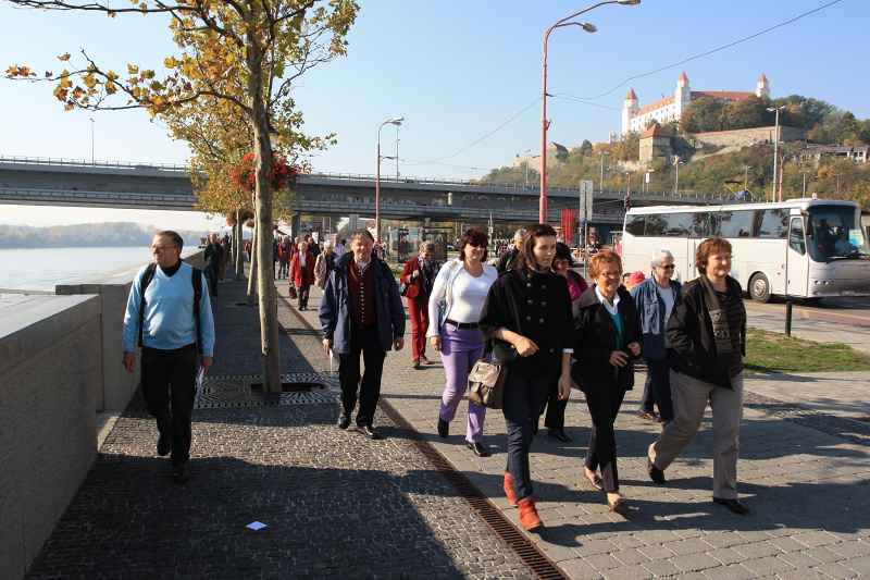 V piatok, po večeri v hostiteľských rodinách, sme sa stretli v útulnej kaviarničke „Le Patio" a pospomínali sme na časy „starej" farnosti Christi Himmelfahrt a aj na tých, ktorí zostali doma, v Kemptene. V sobotu sme spoločne absolvovali peší okruh historickým centrom Bratislavy, súčasťou ktorého bola aj návšteva kostola rádu františkánov, prehliadka kňazského seminára a krátky pobyt v katedrále Svätého Martina (vystihli sme chvíľku voľna medzi krstom a svadbou). Sobotu sme zavŕšili spoločným posedením. Naši nemeckí priatelia nám pripravili ochutnávku ich „zlatého moku" (bavorského piva, ktoré priviezli so sebou) a naše gazdinky zasa napiekli širokú paletu sladkého a slaného, ku ktorému sme ponúkali vínko z pezinskej vinohradníckej oblasti. K tomu všetkému striedavo zazneli príhovory „vedúcich delegácií" a duchovných otcov oboch farností. Rečovú bariéru prelamovali farníci, ktorí ovládajú nemčinu a tlmočili. Tých však nebolo treba pri speve ľudových piesní, ktoré vytvárali dobrú náladu a spievali sme si ich navzájom.
